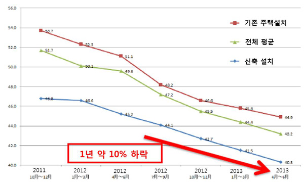2015년에는 전력회사에 보상하는 가격을 1㎾당 30엔으로 2013년의 38엔 수준을 2년 만에 20% 이상 낮추는 방안이 제시됐다.