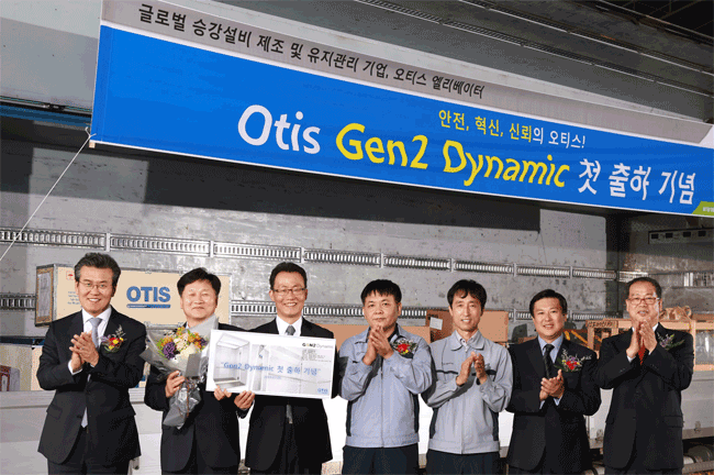 오티스 엘리베이터 코리아(사장 조익서)가 지난 9일 충남 아산에 CLC(Customer Logistics Center)를 오픈하고 국내 엔지니어가 디자인한 독자적인 신형 엘리베이터 모델인 ‘젠투다이나믹(Gen2 Dynamic)’의 출하식을 가졌다.