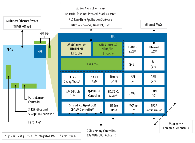 알테라의 혁신적, 단일 칩 PLC 레퍼런스 디자인은 알테라 ARM 기반 사이클론 V SoC에서 실행된다. 3S 스마트 소프트웨어 솔루션즈(3S Smart Software Solutions), 엑소 인터내셔널(EXOR International), 바소 실렉스(Barco Silex)와 함께 개발한 이 레퍼런스 디자인은 microSOM(micro system-on-module)에서 OPC-UA를 통해 모션 제어, EtherCAT, HMI 및 보안 엔터프라이즈 통신을 구현한다.
