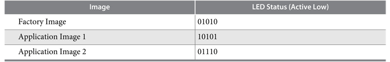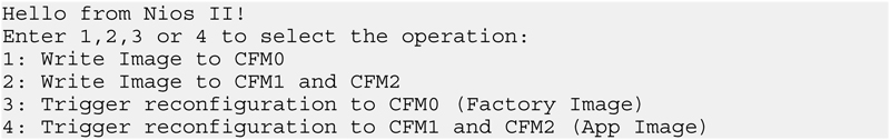 8. 재구성을 트리거하려면 동작 4를 선택한다. LED 동작을 살펴봄으로써 디바이스로 어떤 이미지가 로드되고 있는지 알 수 있다.