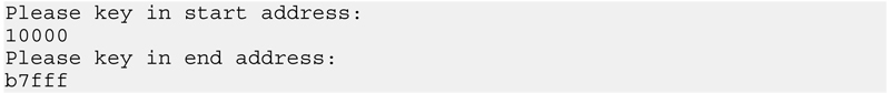 5. 애플리케이션 이미지 1을 애플리케이션 이미지 2로 업데이트하려면 동작 2를 선택한다. 그러면 CFM1과 CFM2의 시작 어드레스 및 끝 어드레스를 입력하라고 지시한다.