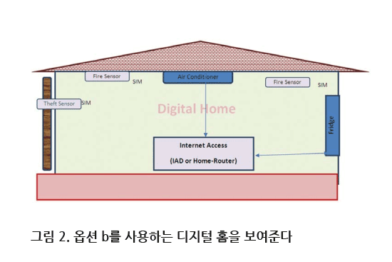 옵션‘a’는 복잡하고 불완전한 솔루션이지만, 저렴한 가격 덕분에 IoT 기기를 인터넷에 연결하는 데 가장 널리 사용되는 방식이다. 이 방식이 복잡한 이유는 기기를 IAD에 연결하려면 고객이 IP 네트워킹의 기본 원리를 이해해야 하기 때문이다. 하지만 이 옵션의 가장 큰 문제는 인터넷에 대한 연결이 보장되지 않는다는 점이다. 즉, IAD에 장애가 발생하면 전체가 마비된다. 응급 상황에서 IAD와 ISP 사이의 인터넷 연결이 작동하지 않는다면 센서와 주택 소유자 사이의 통신이 불가능해진다.