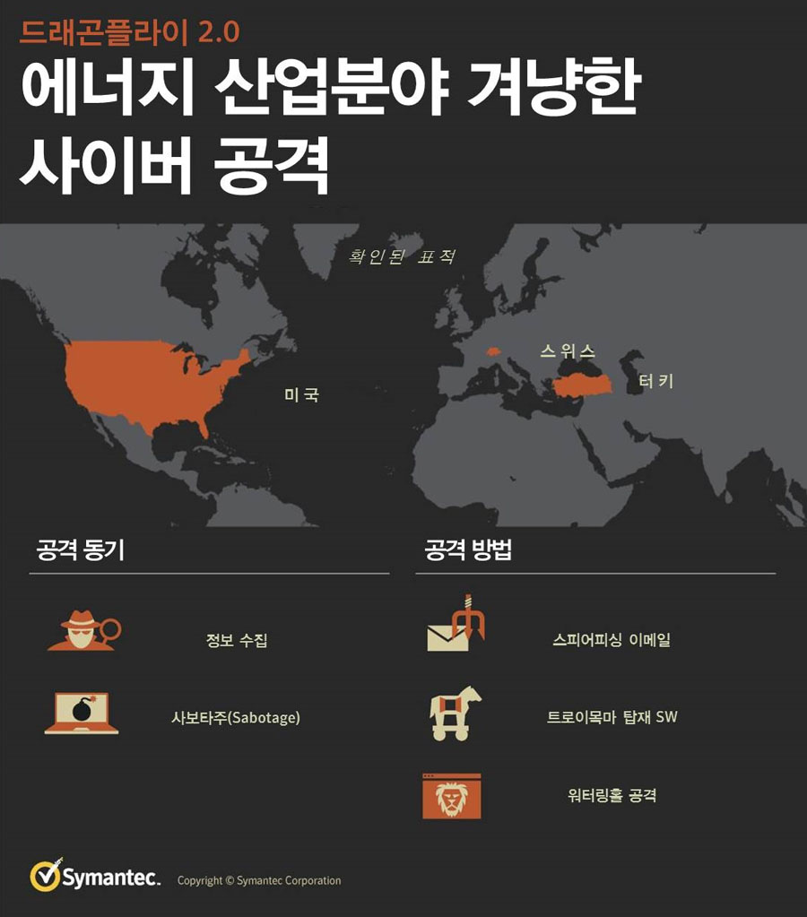 시만텍이 에너지 산업분야를 겨냥한 사이버 스파이 그룹 드래곤플라이(Dragonfly)의 공격이 새로운 양상으로 다시 확산되고 있다고 밝히고, 주의를 당부했다.