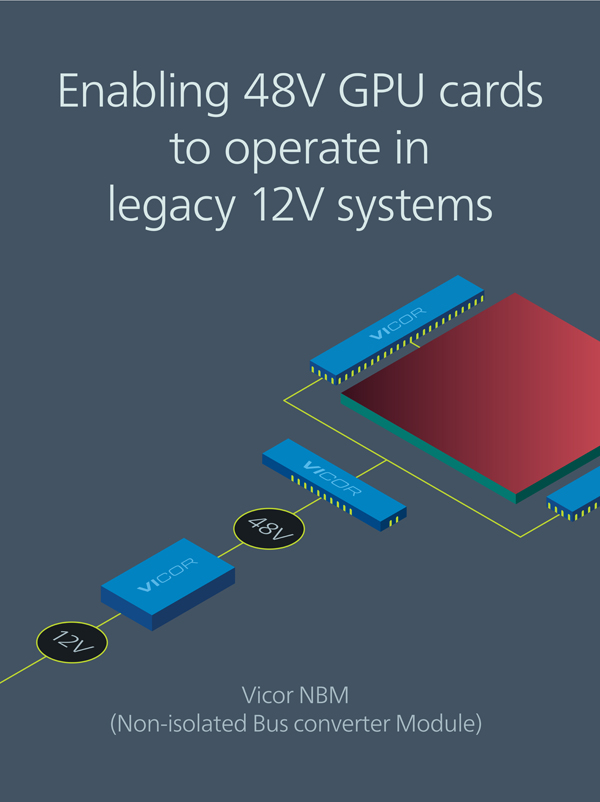 NBM은 GPU전류의 1/48 정도의 적은 값을 추출하는 48V 노드로 구동되는 ”파워 온 패키지”의 모듈식 전류 다중기(MCM)를 사용해 최신의 48V 입력 GPU를 지원한다. 전류 다중 기능은 더 높은 대역폭과 연결성 구현에 방해 요소가 되는 전통적인 12V 시스템에 의해 야기되는 전력 전달의 한계를 극복한다.