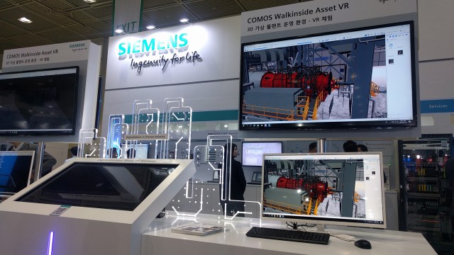 지멘스는 ‘디지털 엔터프라이즈 – 지금 시행하라(Digital Enterprise – Implement Now)’를 주제로 이산·조립산업(Discrete Industry), 공정산업(Process Industry)등 제조업 분야에 따른 고객 맞춤형 스마트공장 솔루션을 선보인다. 이산·조립산업 분야에서는 훼스토(FESTO)와 공동 개발한 스마트 컨베이어 시스템(Multi-carrier System: MCS)을 함께 전시하고, 공정산업 분야에서는 VR 체험존을 마련하는 등 다채롭게 부스를 구성했다.