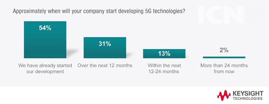 설문조사에 따르면, 설문조사 참여 기업 중 절반 이상(54%)이 이미 5G 기술을 채택하고 있으며, 나머지 46%의 응답자는 5G 라이프사이클 초기에 시장 리더십을 확보하는 것이 주요 투자 요인이라고 답했다. 또한 응답자의 2/3 이상이 5G 기술의 개발 또는 배치를 가속화하기 위해 적극적으로 5G 테스트 솔루션을 찾고 있다고 응답했다.