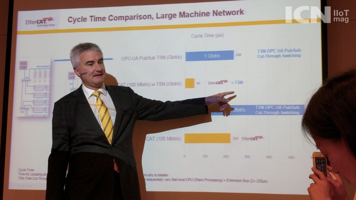 “ETG는 EtherCAT 기술 주관 기관으로 EtherCAT과 TSN에 모두에 대해 잘 알고 있다. ETG의 주요 팀원중 한명은 IEEE의 TSN 표준 논의에 아주 처음부터 참여했다. 그는 이 위훤회에 16년째 함께하고 있기 때문에, 우리가(ETG)가 TSN 논의 첫날부터 참여한 것이라 할 수 있다. 또한 TSN에 대해서 우리는 잘 알고 있다고 할 수 있다. IEEE의 TSN 표준을 논의하는 해당 위원회에는 50~60명이 참여하고 있다. 그 중에서 5명만이 산업자동화 전문가이다. 겨우 5명의 산업자동화 전문가만이 참여하고 있는 것이다.”고 말한다. 제조 및 산업자동화의 측면에서 TSN 표준 논의에서 ETG의 역할이 중요한 지위를 가진다는 설명이기도 하다.