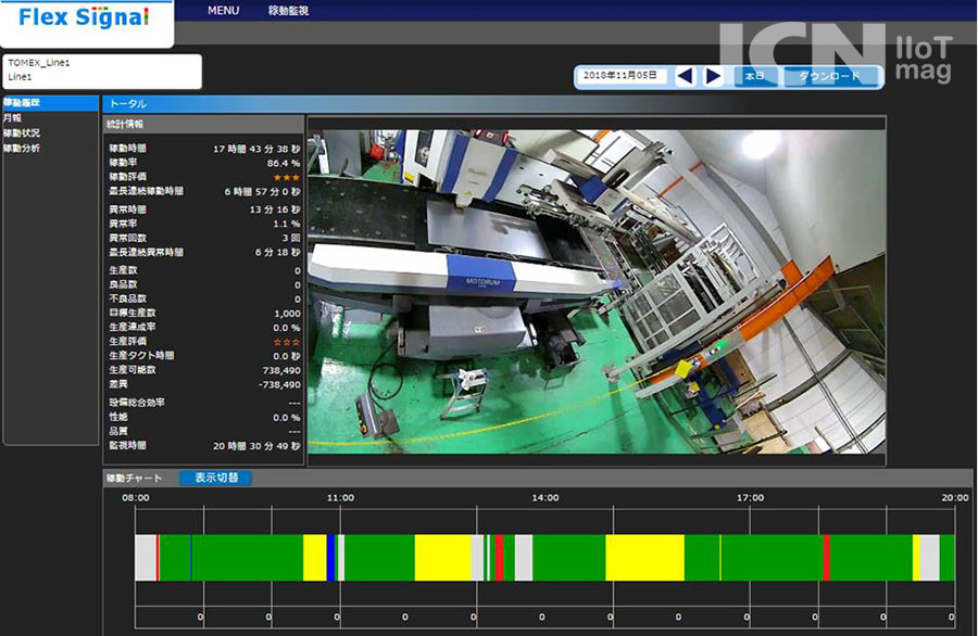 이 패키지는 지금까지 생산 현장에서 정확하게 파악할 수 없었던 설비의 가동 데이터 축적이나 이상 정지의 조기 발견, 이상 정지시 네트워크 카메라와 연동하여 현장 상황이나 작업자의 움직임을 영상으로 기록해 제공한다. 이를 통해 작업 공정의 재검토나 작업자의 업무 스킬 상승, 현장의 생산성 향상, 노동력 절감, 인재 육성 실현이 가능하다.
