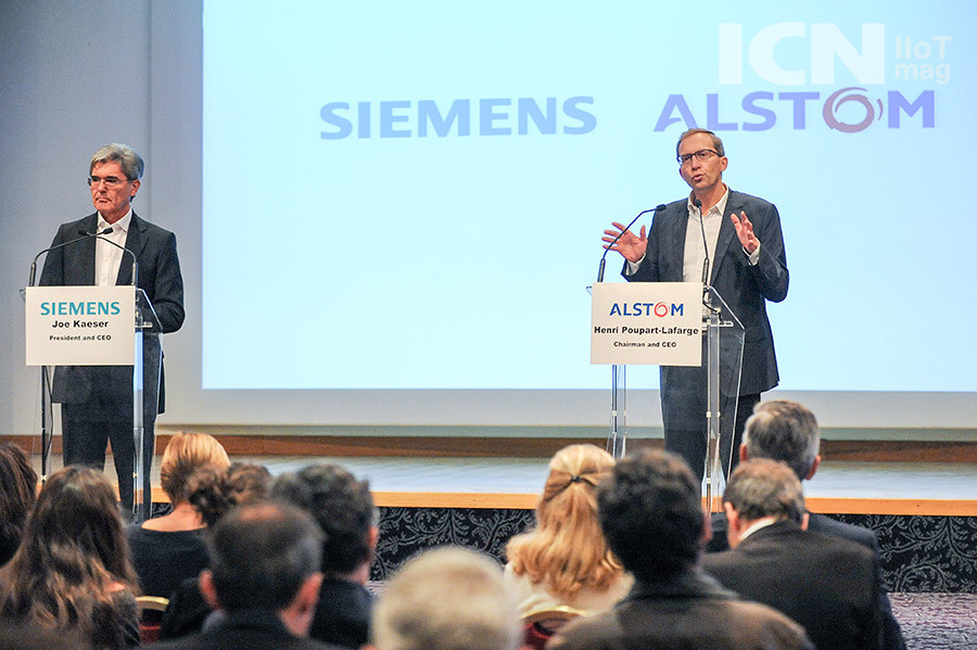 Siemens and Alstom have signed a Memorandum of Understanding to combine Siemens’ mobility business, including its rail traction drives business, with Alstom. In a joint press conference the CEOs of the two companies, Joe Kaeser, Siemens AG (l.), and Henri Poupart-Lafarge from Alstom (r.), announced the creation of a European Champion in Mobility. With Siemens and Alstom two innovative players of the railway market join forces with comprehensive offering and a global presence.