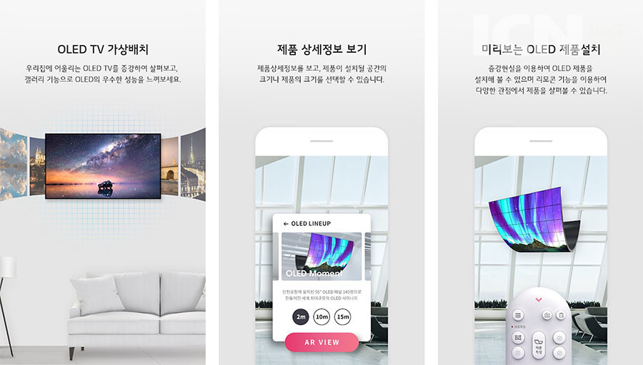 LG디스플레이는 PTC와 협력하여 전세계에서 가장 널리 사용되고 있는 AR SDK(소프트웨어 개발 도구) ‘뷰포리아 엔진(Vuforia Engine)’을 사용해 AR앱을 개발했다. LG디스플레이 AR앱은 소비자들이 OLED를 손쉽고 재미있게 이해할 수 있도록 돕기 위해 제작된 커뮤니케이션 도구로서, OLED 제품을 실제 공간에 가상 배치해보고, 3D 모델링을 통해 OLED의 특장점을 알기 쉽게 이해할 수 있도록 구성됐다. LG디스플레이 임직원들은 AR 앱을 활용해 고객 접점을 다변화하고, 소비자들은 AR 기술을 이용해 생활속에서 차세대 OLED가 어떻게 활용될 수 있는지 직접 체험해볼 수 있다.