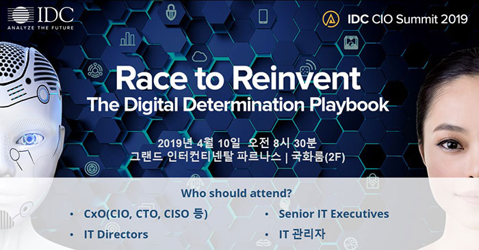 IT 시장분석 및 컨설팅 기관인 한국IDC (인터내셔날 데이터 코퍼레이션 코리아, 대표 정민영)이 오는 4월 10일 그랜드 인터컨티넨탈 서울 파르나스 호텔 국화룸에서 ‘CIO 서밋(Summit) 2019’ 컨퍼런스를 개최한다. 매년 아시아 태평양 지역 12개 도시에서 로드쇼 형식으로 진행되는 ‘IDC CIO 서밋’ 컨퍼런스는 IDC의 최신 연구 분석과 사례발표 등을 통해 CIO(최고정보책임자)들에게 시사점을 제공하고 실행가능한 인사이트를 제공한다.