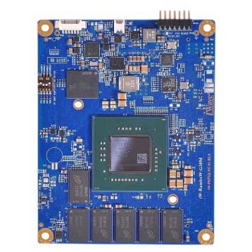 아이웨이브(iWave)의 징크(Zynq®) 울트라스케일+(UltraScale+™) MPSoC FPGA SOM(위 사진 참조)은 개발자가 지속적으로 기능을 개선하고, 경쟁력을 강화할 수 있는 유연한 플랫폼으로, 이미지/음성인식 및 객체/포즈 감지 등과 같은 기능을 손쉽게 개발할 수 있도록 다양한 하드웨어 가속 기능을 제공한다. FGPA를 기반으로 인공 신경망을 구현하면, 변화하는 표준 및 최종 사용자의 요구에 따라 애플리케이션을 조정하고, 미래의 설계에도 대응할 수 있는 유연성을 확보할 수 있다. 아이웨이브는 AI 및 머신러닝 애플리케이션을 즉각적으로 평가할 수 있는 포괄적인 징크 울트라스케일+ MPSoC 개발 플랫폼 또한 제공한다(아래 사진 참조).