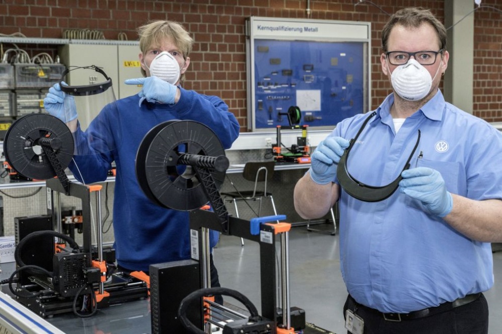 코로나19(COVID-19)가 세계적대유행(팬데믹)으로 확산되고 있는 것과 관련 의료 종사자들의 안전을 위한 얼굴 전체를 보호하는 안면보호구 및 안면보호구용 홀더를 지원하기 위해 폭스바겐그룹이 자사 자동차 및 공장에 설치된 3D 프린터를 풀 가동하고 있다.