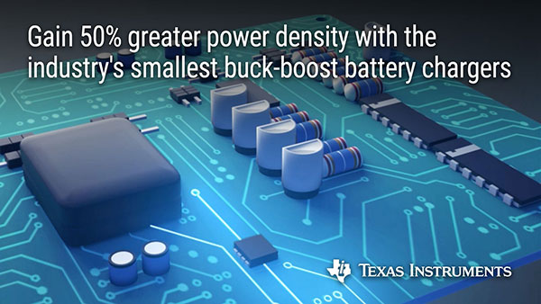 업계에서 가장 크기가 작고 고도로 통합된 TI의 고효율 충전기로 배터리 수명을 5배 이상 연장