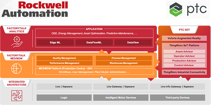두 회사가 파트너십을 통해 공동 개발해 공동으로 서비스하고 있는 ‘팩토리토크 이노베이션 스위트(FactoryTalk InnovationSuite, powered by PTC)’는 업계 최초의 포괄적인 디지털 전환 소프트웨어 스위트로 산업용사물인터넷(IIoT), 엣지-to-클라우드 분석, 제조 실행 시스템(MES), 증강현실(AR)이 완벽하게 통합되어 커넥티드 엔터프라이즈 환경을 제공한다. 기업 고객들이 혁신 솔루션을 빠르게 개발하고, 운영 환경을 구축하여 글로벌 시장에 확장하는 과정을 신속하게 수행할 수 있도록 지원하는 제품이다.