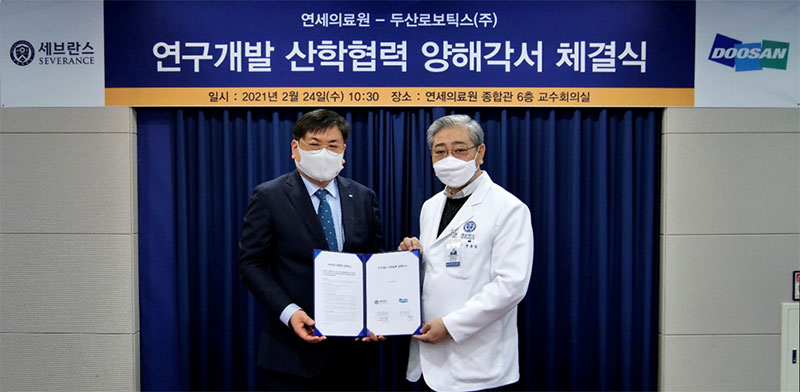 최동휘 두산로보틱스 대표는 “한국 의료기술은 세계 최고 수준이지만, 수술용 로봇 등 의료 어플리케이션 대부분을 수입에 의존하고 있는 현실”이라면서, “이번 협약을 통해 연세의료원과 한국형 로봇의료시스템을 개발해 국내 의료환경을 개선하고, 국내 의료로봇 산업 활성화에 기여하겠다”고 말했다.