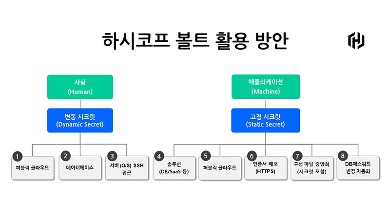 김정훈 하시코프코리아 전무(기술총괄)는 “한국 IT 환경이 하드웨어 중심에서 소프트웨어로 이동하면서 정적(static)이었던 전통 데이터센터에서 동적(dynamic)인 셀프서비스 기반의 현대화된 데이터센터로 변화했다”며 “IT 조직 전반의 패러다임이 변화하면서 ‘종속되지 않는’ 인프라 운영 방안을 고민하게 되고 볼트는 종속되지 않는 시크릿 관리를 지원한다”고 말했다.