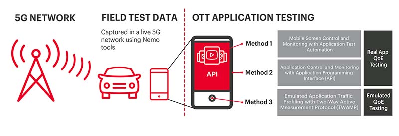 무선 서비스 제공업체들은 새로운 어플리케이션 자동 테스트 방법을 통해 5G 네트워크 성능을 빠르게 최적화하고 전 세계적으로 가장 널리 사용되는 OTT 서비스와 페이스북 메신저, 마이크로소프트 팀, 스냅챗, 틱톡, 줌과 같은 소셜 미디어 어플리케이션에 대해 더 우수한 체감 품질(QoE)을 제공할 수 있다.