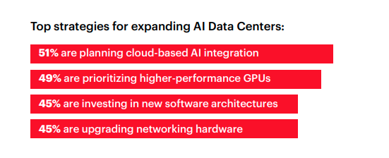 보고서에 따르면, 이미 응답자의 55%가 400G 네트워크를 도입했으며, 차세대 AI 워크로드를 지원하기 위해 800G(34%)와 1.6T(22%) 기술을 도입하거나 시험하고 있는 것으로 나타났다. 특히 주목할 점은 울트라 이더넷(Ultra Ethernet)과 같은 AI 및 고성능 컴퓨팅(HPC)에 특화된 새로운 네트워킹 기술에 대한 높은 관심이다. 응답자의 58%가 울트라 이더넷을, 62%가 소프트웨어 정의 네트워킹(SDN)을 고려하고 있다고 답해, 기존의 인피니밴드(InfiniBand)를 넘어 더 개방적이고 효율적인 표준을 찾으려는 움직임이 본격화되고 있음을 시사한다.