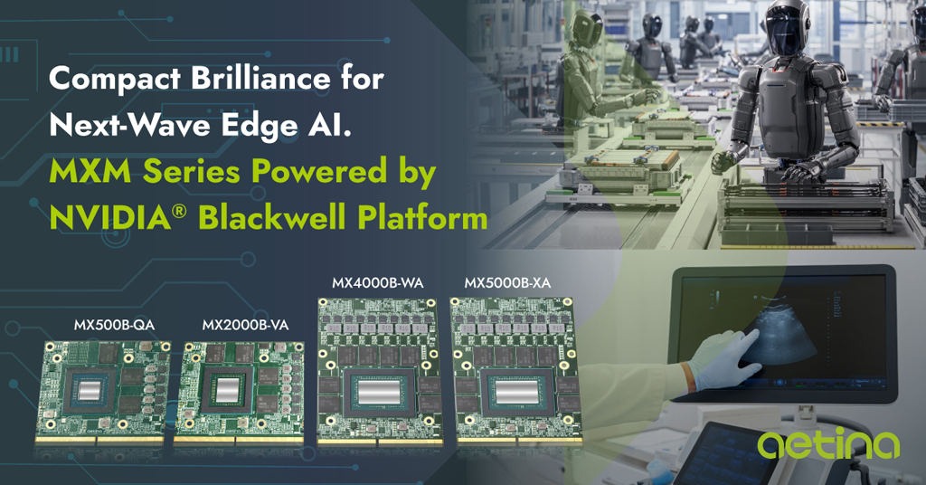 엣지 AI 솔루션 전문 기업 에이티나(Aetina)가 엔비디아(NVIDIA)의 차세대 ‘블랙웰(Blackwell)’ 아키텍처를 기반으로 한 산업용 MXM AI 모듈 시리즈를 출시했다. 이번 신제품은 기존 대비 최대 3배 향상된 AI 성능을 앞세워 자율주행 로봇(AMR)과 스마트 의료 등 고성능 엣지 컴퓨팅 시장을 공략한다.