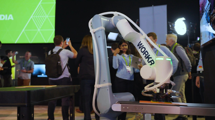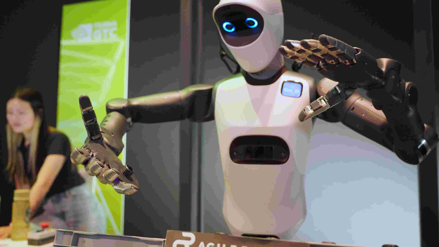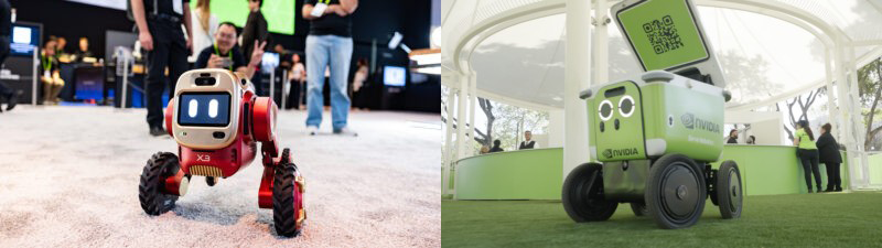 행사장 곳곳에서는 인간의 형태를 닮은 휴머노이드 로봇들이 안내와 물품 전달 등의 임무를 수행했다. 애지봇(AGIBOT)과 애자일 로봇(Agile Robots)의 휴머노이드는 엔비디아 아이작 심(Isaac Sim)과 아이작 랩(Isaac Lab)을 활용해 가상 환경에서 수천 번의 훈련을 거쳤다. 이를 통해 물체를 집고 옮기는 정교한 조작 성능을 확보했다.